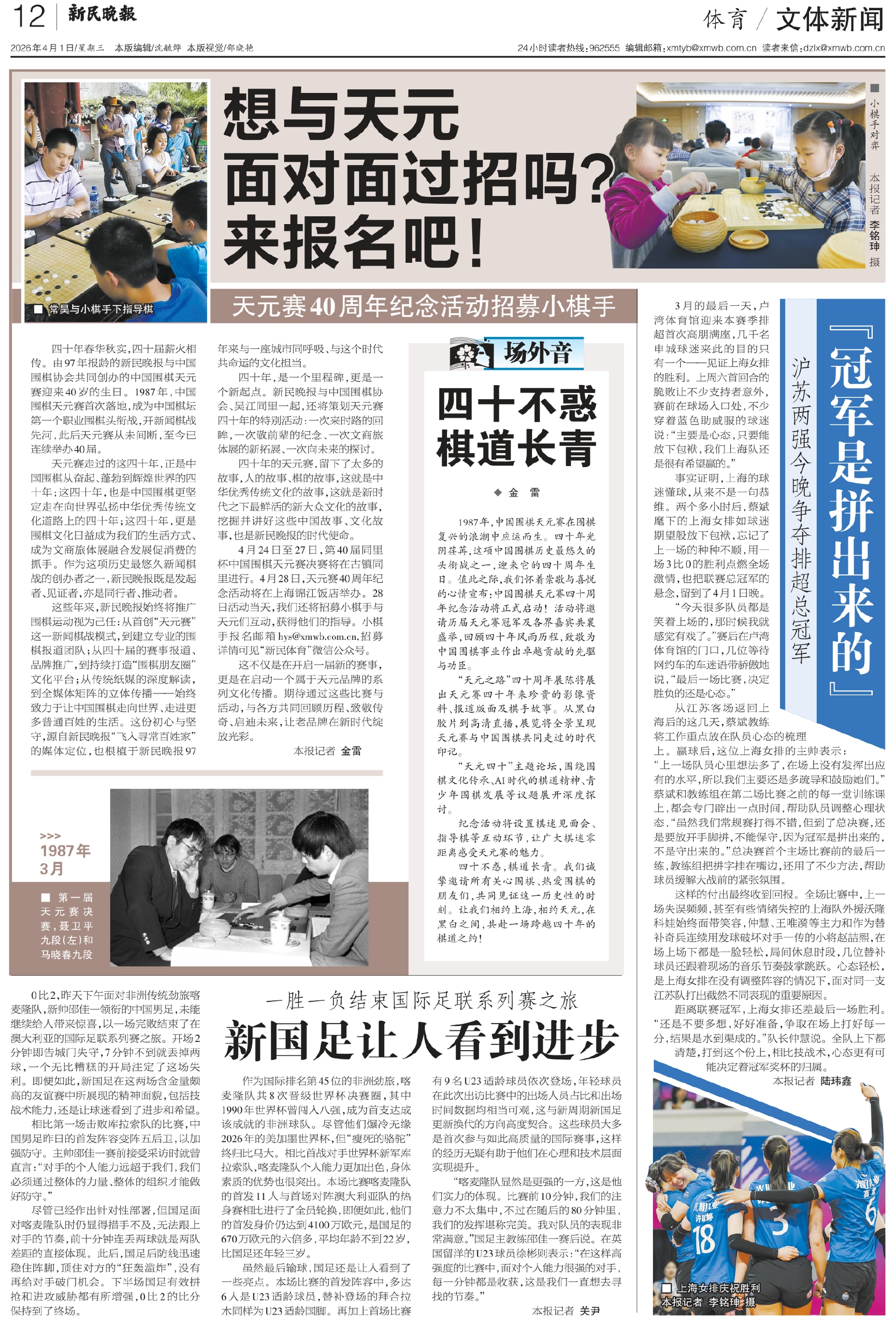 这些年来,新民晚报始终将推广围棋运动视为己任:从首创“天元赛”这一新闻棋战模式,到建立专业的围棋报道团队;从四十届的赛事报道、品牌推广,到持续打造“围棋朋友圈”文化平台;从传统纸媒的深度解读,到全媒体矩阵的立体传播——始终致力于让中国围棋走向世界、走进更多普通百姓的生活。这份初心与坚守,源自新民晚报“飞入寻常百姓家”的媒体定位,也根植于新民晚报97年来与一座城市同呼吸、与这个时代共命运的文化担当。