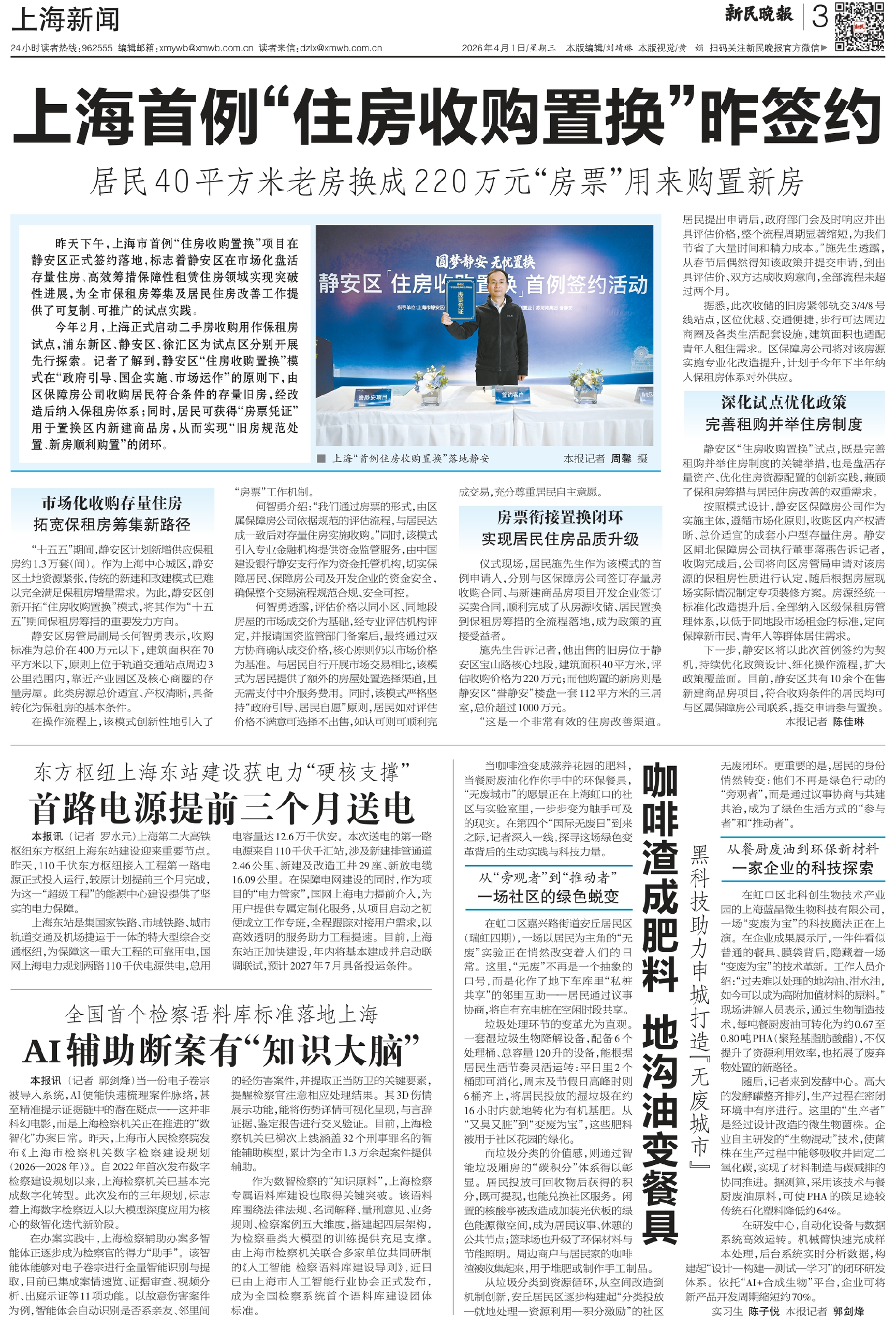 昨天下午,上海市首例“住房收购置换”项目在静安区正式签约落地,标志着静安区在市场化盘活存量住房、高效筹措保障性租赁住房领域实现突破性进展,为全市保租房筹集及居民住房改善工作提供了可复制、可推广的试点实践。