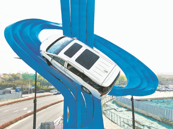 近日,上海浦东金桥镇杨高北路佳林路路口,一座全新的“飞车”雕塑亮相。“飞车”雕塑曾是金桥镇的标志性雕塑,其造型一直沿用路和车的主题元素。第一代为别克新世纪,第二代为别克君威,2022年因轨交21号线站点建设需要被拆除,此次回归,车型换成了“GL8”。 作为上海汽车产业的“重镇”,金桥已初步形成了深度跨界融合的智能网联和新能源汽车产业体系,朝着“电动化、智能化、网联化”转型升级。 本报记者 陈炅玮 摄影报道