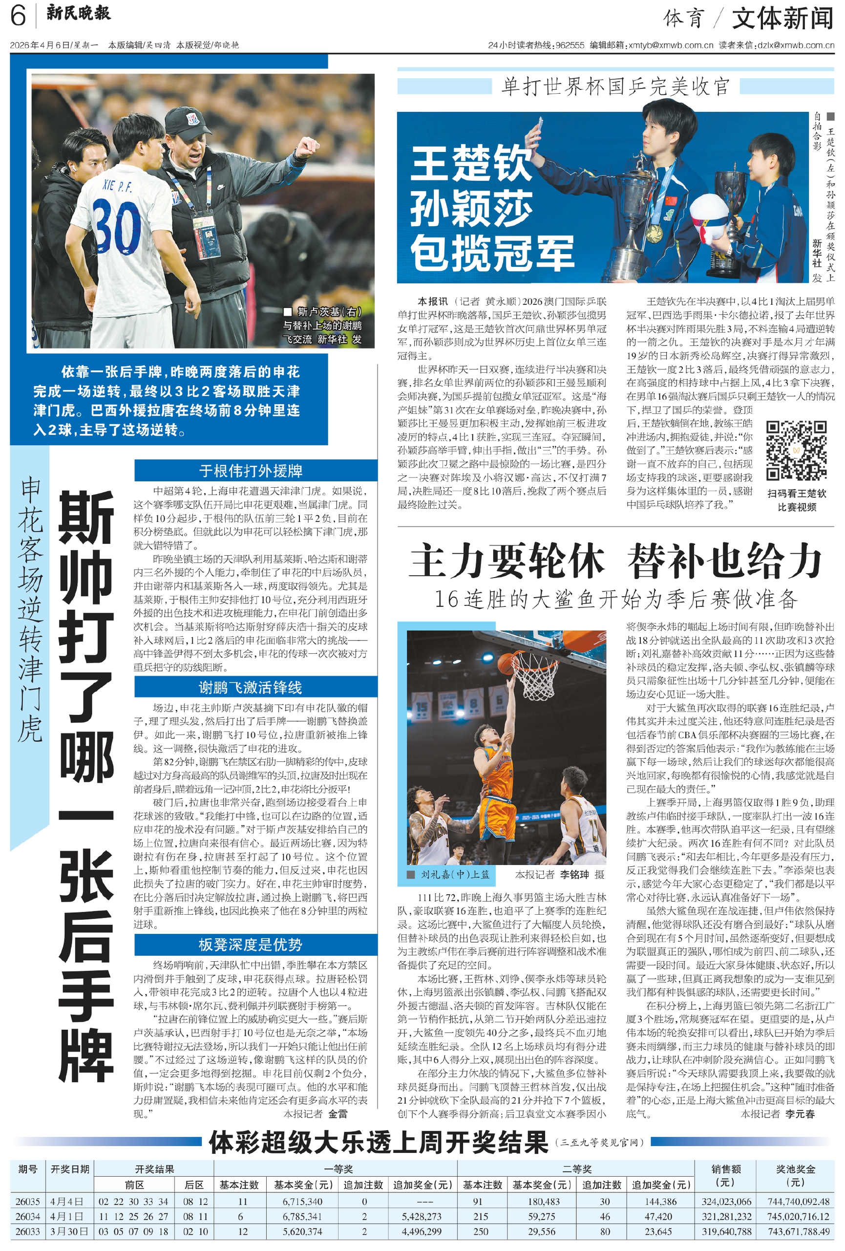 “拉唐在前锋位置上的威胁确实更大一些。”赛后斯卢茨基承认,巴西射手打10号位也是无奈之举,“本场比赛特谢拉无法登场,所以我们一开始只能让他出任前腰。”不过经过了这场逆转,像谢鹏飞这样的队员的价值,一定会更多地得到挖掘。申花目前仅剩2个负分,斯帅说:“谢鹏飞本场的表现可圈可点。他的水平和能力毋庸置疑,我相信未来他肯定还会有更多高水平的表现。” 本报记者 金雷