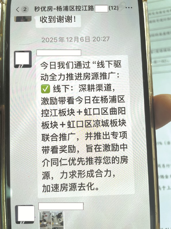 然而,直到合同到期,两套房仍未卖出。“签合同前,说得天花乱坠,结果全是泡影。”李老伯无奈表示,服务期内,“秒优房”工作人员每天会给他发送一组“工作汇报”照片,内容多为在各中介门店打卡,以此证明正在开展推广工作,但推广效果如何、服务质量好坏,全凭工作人员自说自话。“合同里明明约定会邀请专业房产自媒体拍摄、发布推广视频,但从头到尾,我连一条关于自己房子的推广视频都没看到过。”