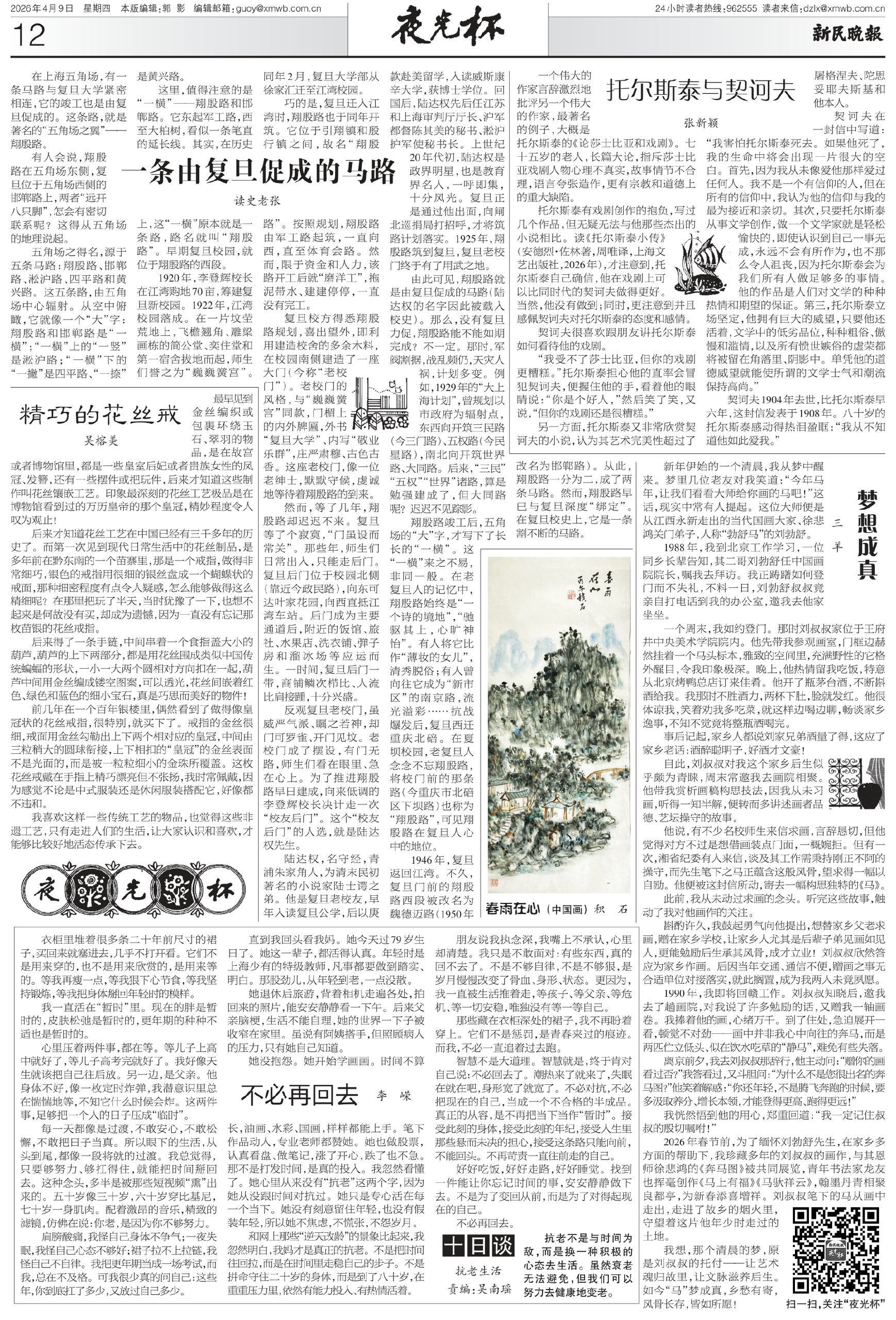 翔殷路竣工后,五角场的“大”字,才写下了长长的“一横”。这“一横”来之不易,非同一般。在老复旦人的记忆中,翔殷路始终是“一个诗的境地”,“驰驱其上,心旷神怡”。有人将它比作“薄妆的女儿”,清秀脱俗;有人曾向往它成为“新市区”的南京路,流光溢彩……抗战爆发后,复旦西迁重庆北碚。在夏坝校园,老复旦人念念不忘翔殷路,将校门前的那条路(今重庆市北碚区下坝路)也称为“翔殷路”,可见翔殷路在复旦人心中的地位。