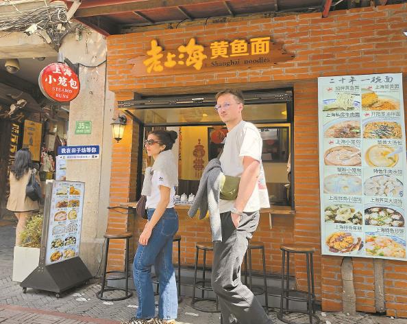 田子坊的“老上海黄鱼面”店铺吸引很多外国游客光顾 本版摄影 本报记者 张龙