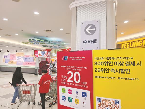 这种客流结构的变化促使商家作出调整。纪晨浩说,店门口的韩文指示牌是去年年末新放置的。从去年韩国旅游热开始,店铺便与Kakao Pay展开合作。这种针对特定客群的设置,让支付的便利性成为承接流量的关键一环。