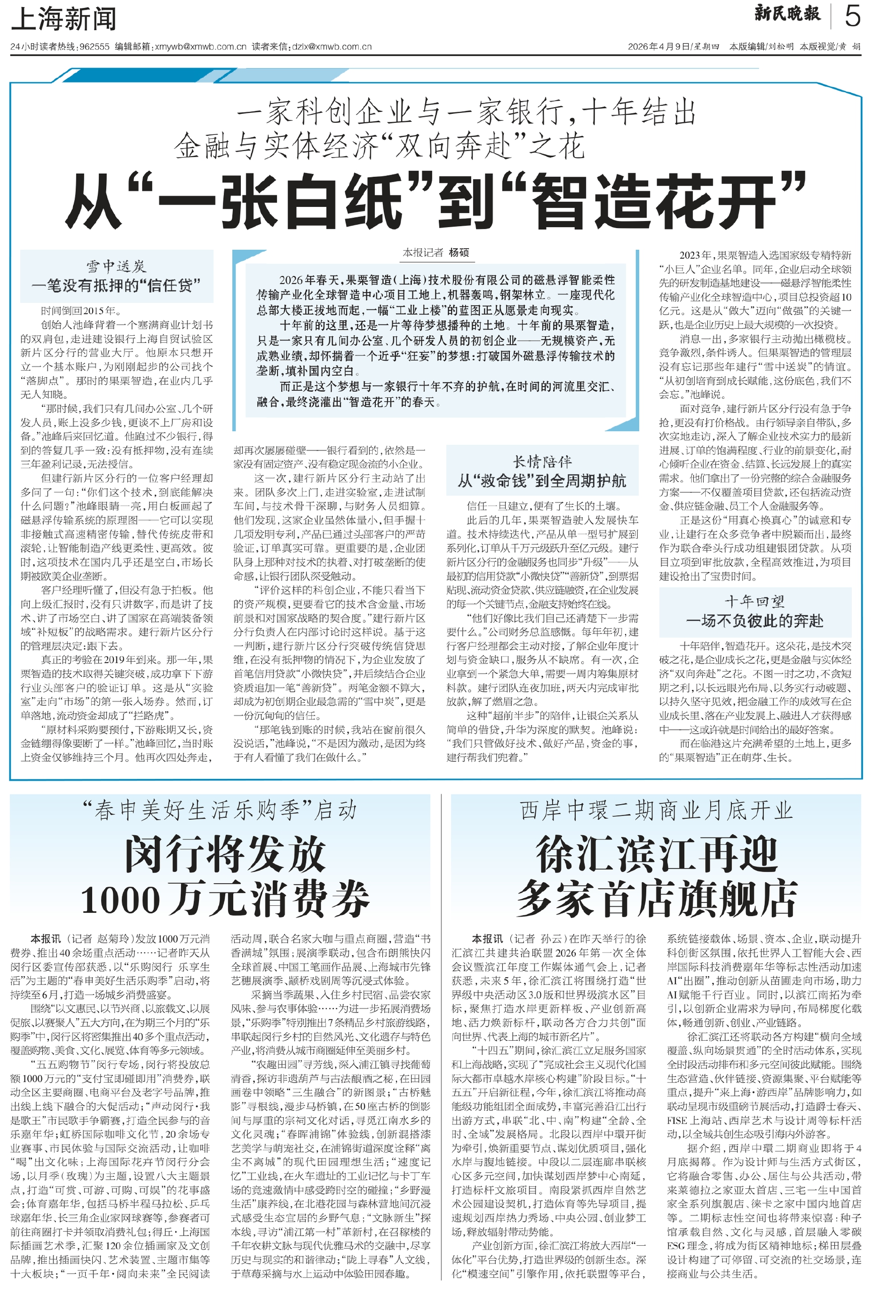 十年陪伴,智造花开。这朵花,是技术突破之花,是企业成长之花,更是金融与实体经济“双向奔赴”之花。不图一时之功,不贪短期之利,以长远眼光布局、以务实行动破题、以持久坚守见效,把金融工作的成效写在企业成长里、落在产业发展上、融进人才获得感中——这或许就是时间给出的最好答案。