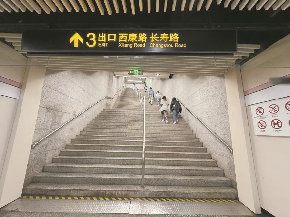 年近七旬的周老伯近日向“新民帮侬忙”反映,周末他前往长寿路上的新南华餐厅就餐,乘坐地铁至长寿路站后,本想从最近的3号口出站,可走到通道口却犯了难,眼前是一道又高又陡的阶梯,分四段有数十级,年迈的他根本无力攀爬。看到旁边提示“2号口有自动扶梯”,周老伯转而前往2号口,可乘坐扶梯上行后,却发现自己身处一个“下沉式”广场,想要走到地面,还需再爬一段台阶,等抵达地面时,他早已气喘吁吁。“长寿路站是换乘大站,乘客这么多,能不能加装无障碍设施,让我们老年人和行动不便的人出行更方便?”周老伯的呼吁,道出了不少老年市民的心声。