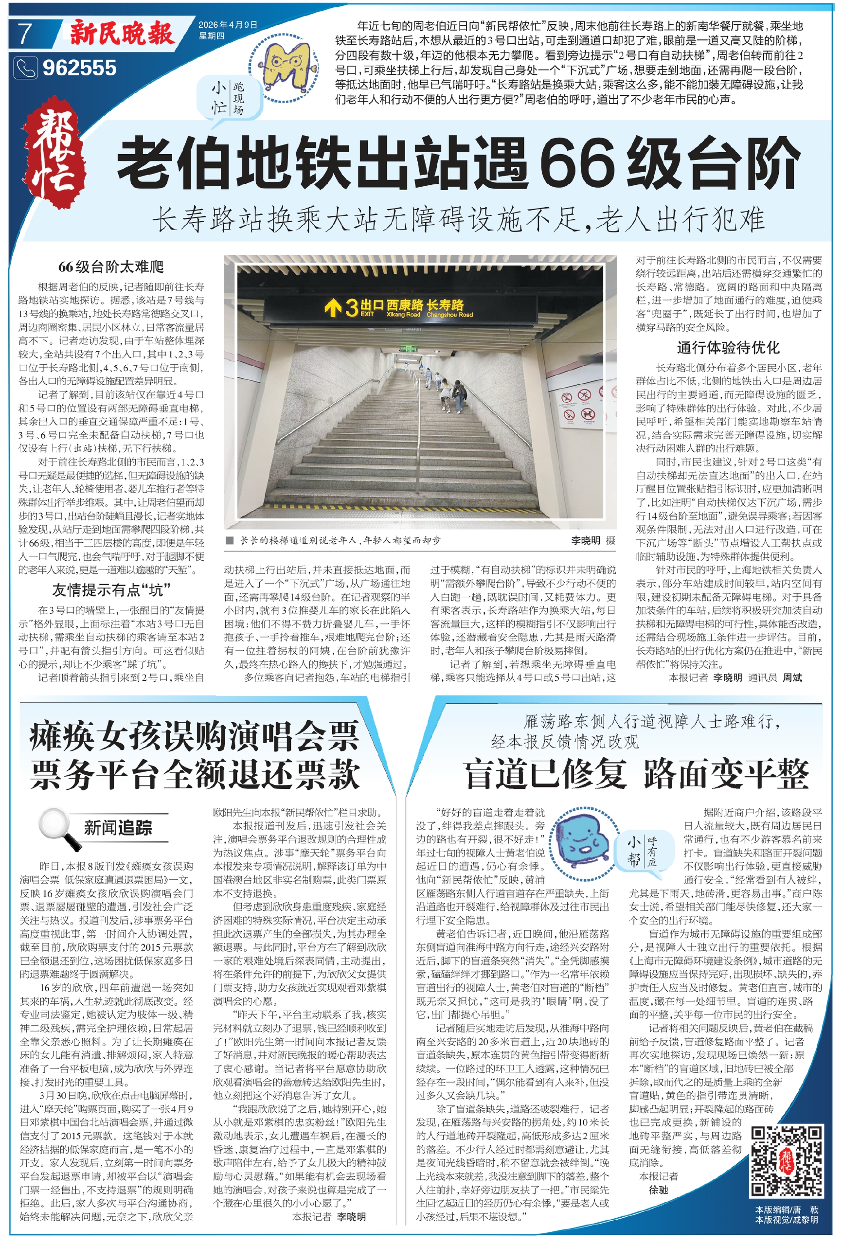 针对市民的呼吁,上海地铁相关负责人表示,部分车站建成时间较早,站内空间有限,建设初期未配备无障碍电梯。对于具备加装条件的车站,后续将积极研究加装自动扶梯和无障碍电梯的可行性,具体能否改造,还需结合现场施工条件进一步评估。目前,长寿路站的出行优化方案仍在推进中,“新民帮侬忙”将保持关注。