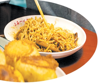 来自山西的游客马涛正端着一碗鳝丝冷面吃得津津有味。“和家人来上海旅游,从抖音上看到推荐的特色小吃——上海冷面,就特地来尝尝。”马涛笑着说,作为山西人,他吃惯了筋道厚重的刀削面,没想到上海冷面另有一番风味,“面条爽滑不粘牙,花生酱醇厚,配着江南特有的鳝丝浇头,越吃越有滋味,味道相当好,不愧是百年老字号。”他一边说,一边竖起大拇指连连赞叹。马涛还特意点了一心斋招牌牛肉煎包,“排了十几分钟的队才买上”。他表示,还准备去城隍庙尝一尝蟹黄面,多体验不一样的面食风味。