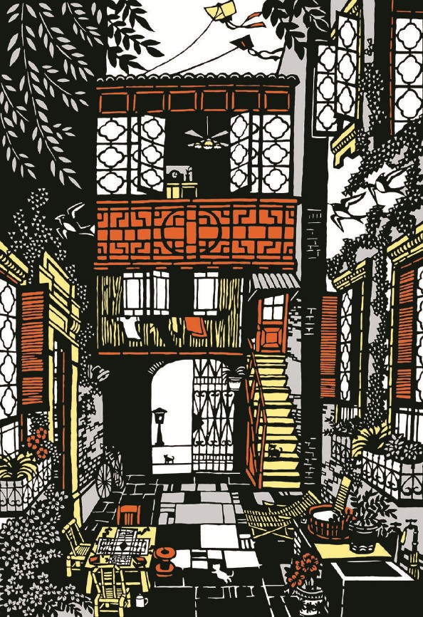 春拂过街楼(套色剪纸)