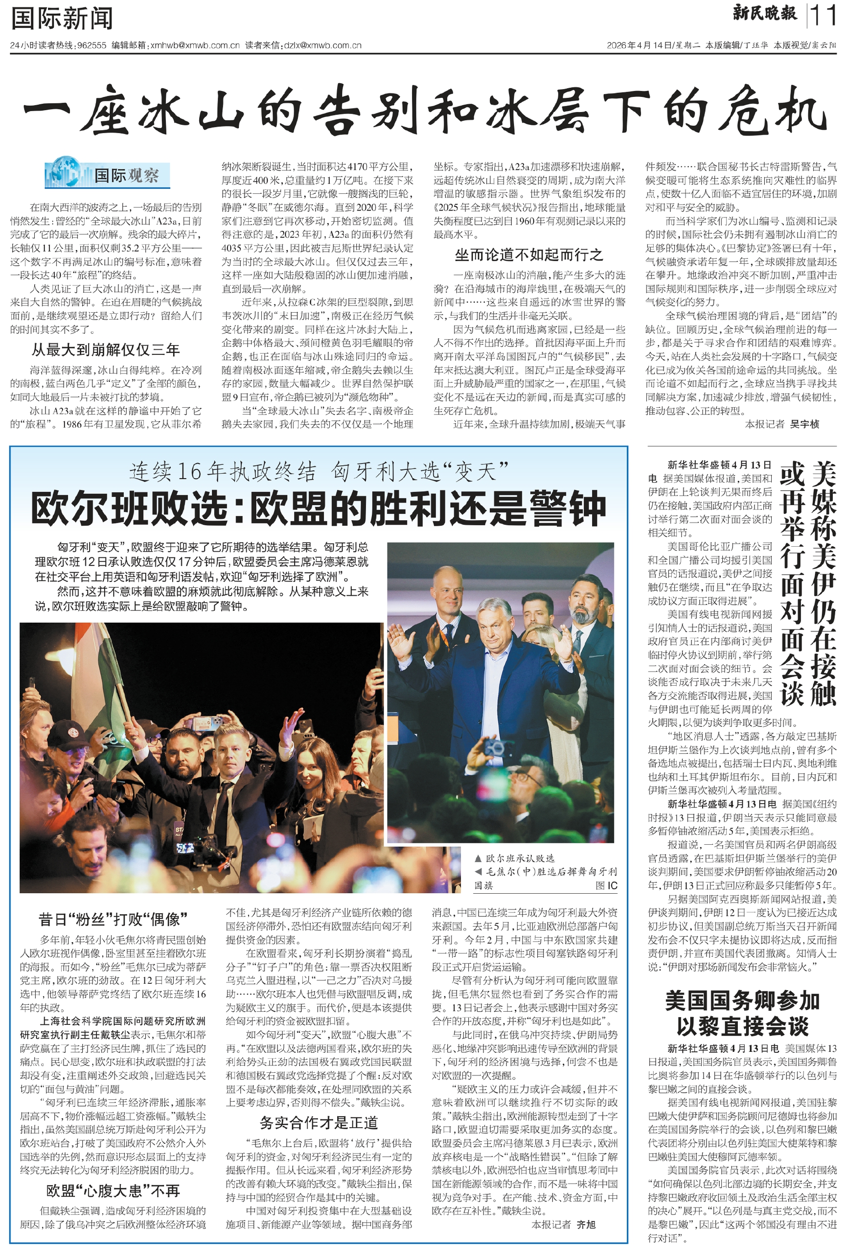 而当科学家们为冰山编号、监测和记录的时候,国际社会仍未拥有遏制冰山消亡的足够的集体决心。《巴黎协定》签署已有十年,气候融资承诺年复一年,全球碳排放量却还在攀升。地缘政治冲突不断加剧,严重冲击国际规则和国际秩序,进一步削弱全球应对气候变化的努力。