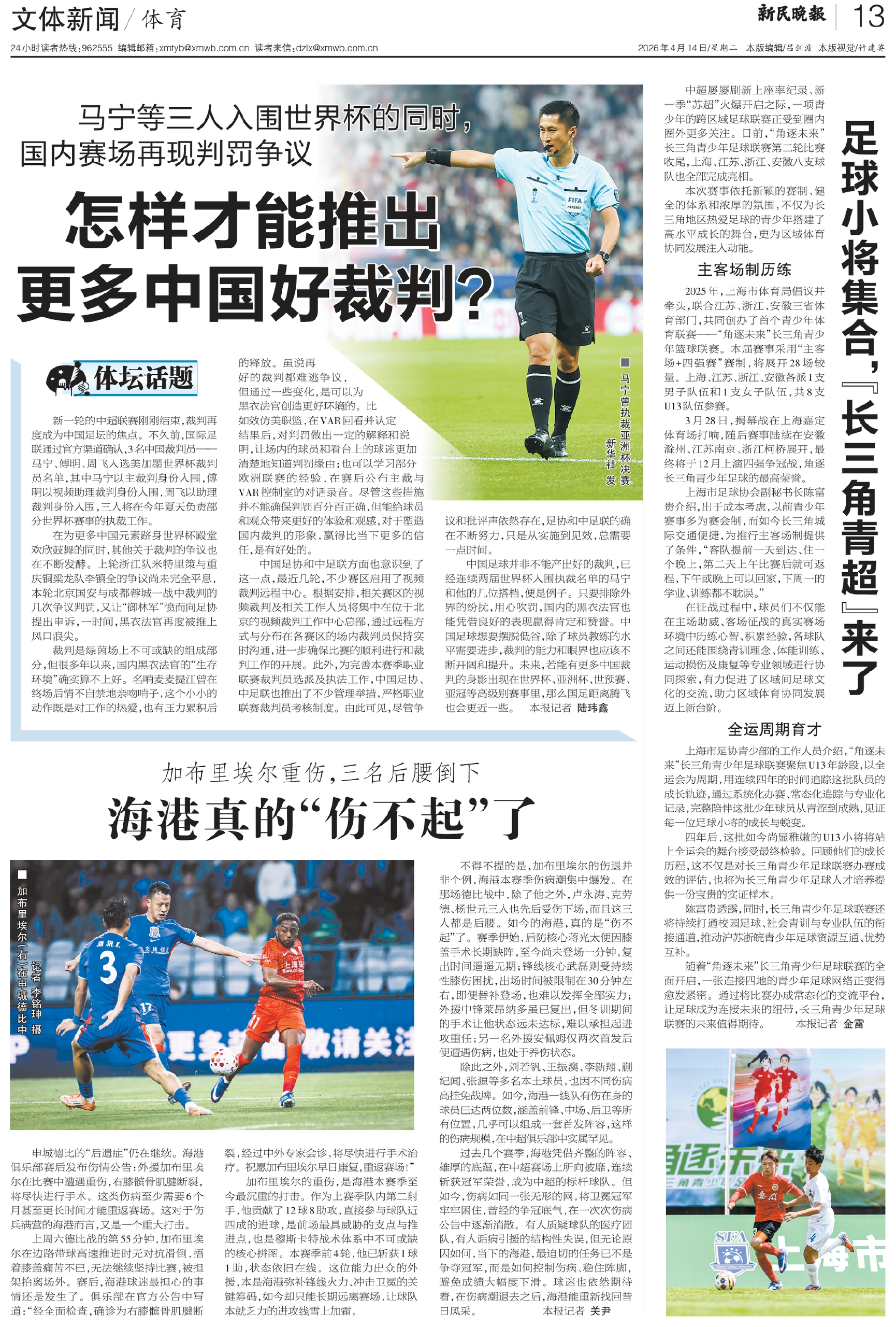 中国足球并非不能产出好的裁判,已经连续两届世界杯入围执裁名单的马宁和他的几位搭档,便是例子。只要排除外界的纷扰,用心吹罚,国内的黑衣法官也能凭借良好的表现赢得肯定和赞誉。中国足球想要摆脱低谷,除了球员教练的水平需要进步,裁判的能力和眼界也应该不断开阔和提升。未来,若能有更多中国裁判的身影出现在世界杯、亚洲杯、世预赛、亚冠等高级别赛事里,那么国足距离腾飞也会更近一些。 本报记者 陆玮鑫