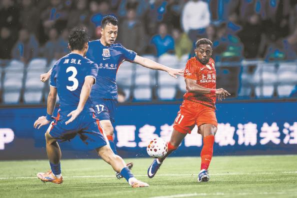 加布里埃尔(右)在申城德比中 记者 李铭珅 摄