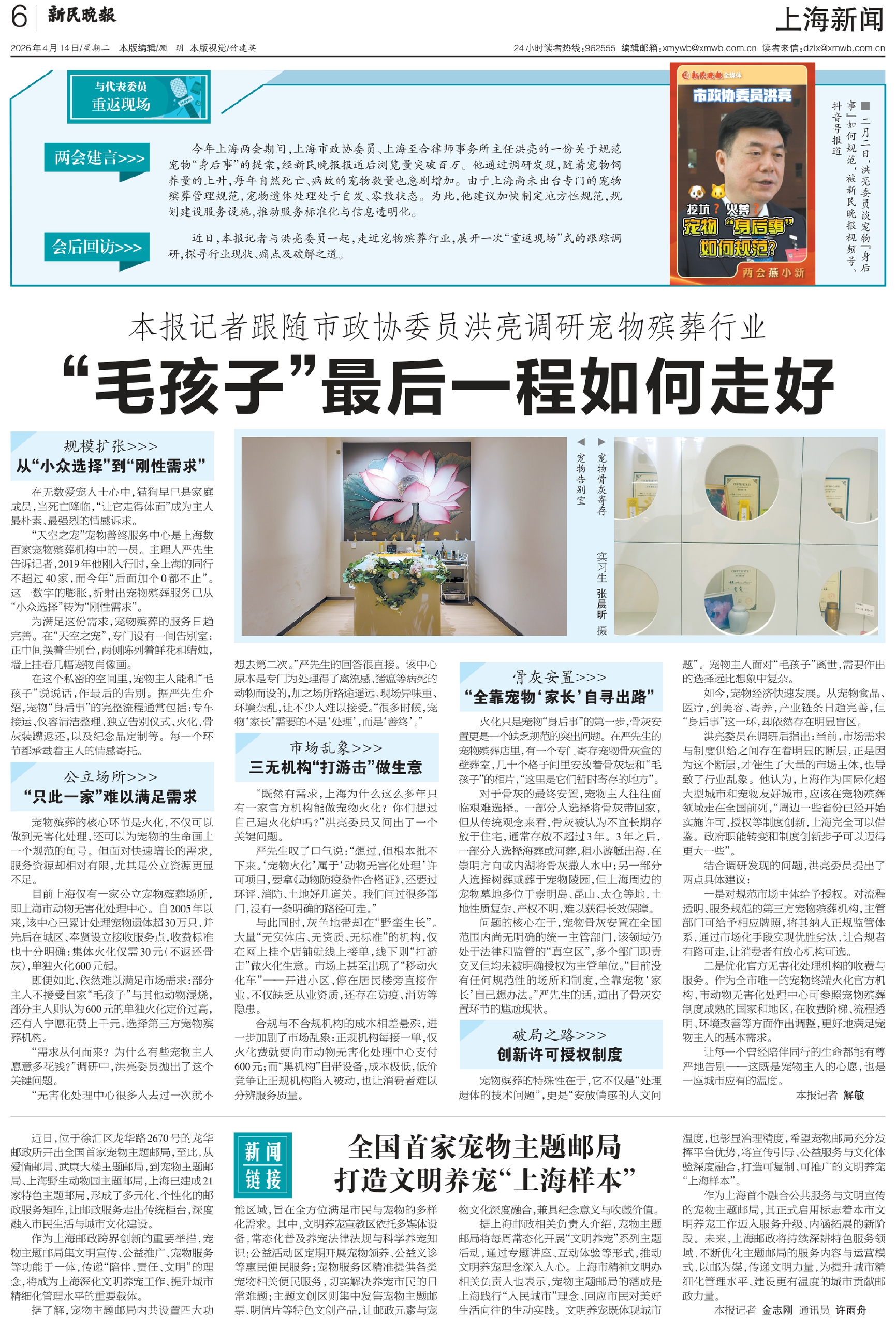 近日,本报记者与洪亮委员一起,走近宠物殡葬行业,展开一次“重返现场”式的跟踪调研,探寻行业现状、痛点及破解之道。