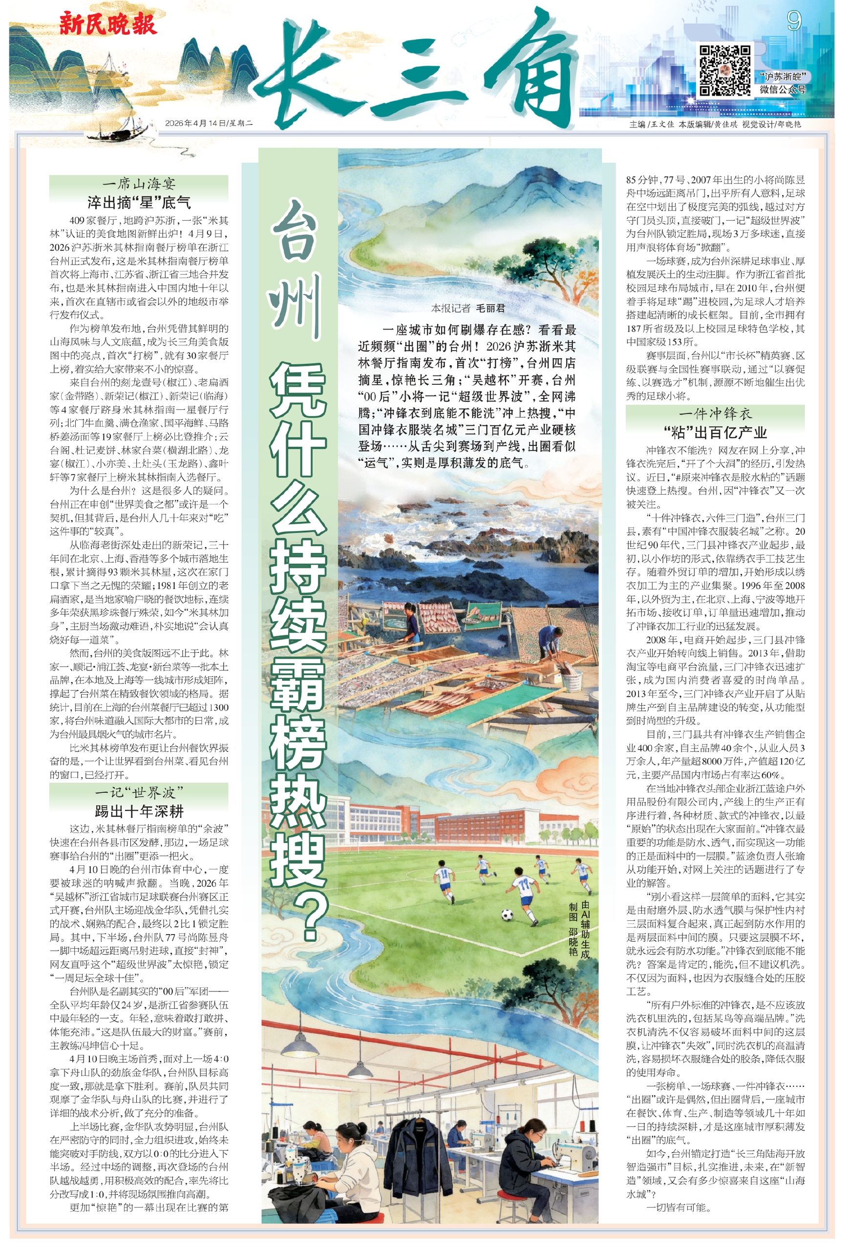 一座城市如何刷爆存在感?看看最近频频“出圈”的台州!2026沪苏浙米其林餐厅指南发布,首次“打榜”,台州四店摘星,惊艳长三角;“吴越杯”开赛,台州“00后”小将一记“超级世界波”,全网沸腾;“冲锋衣到底能不能洗”冲上热搜,“中国冲锋衣服装名城”三门百亿元产业硬核登场……从舌尖到赛场到产线,出圈看似“运气”,实则是厚积薄发的底气。