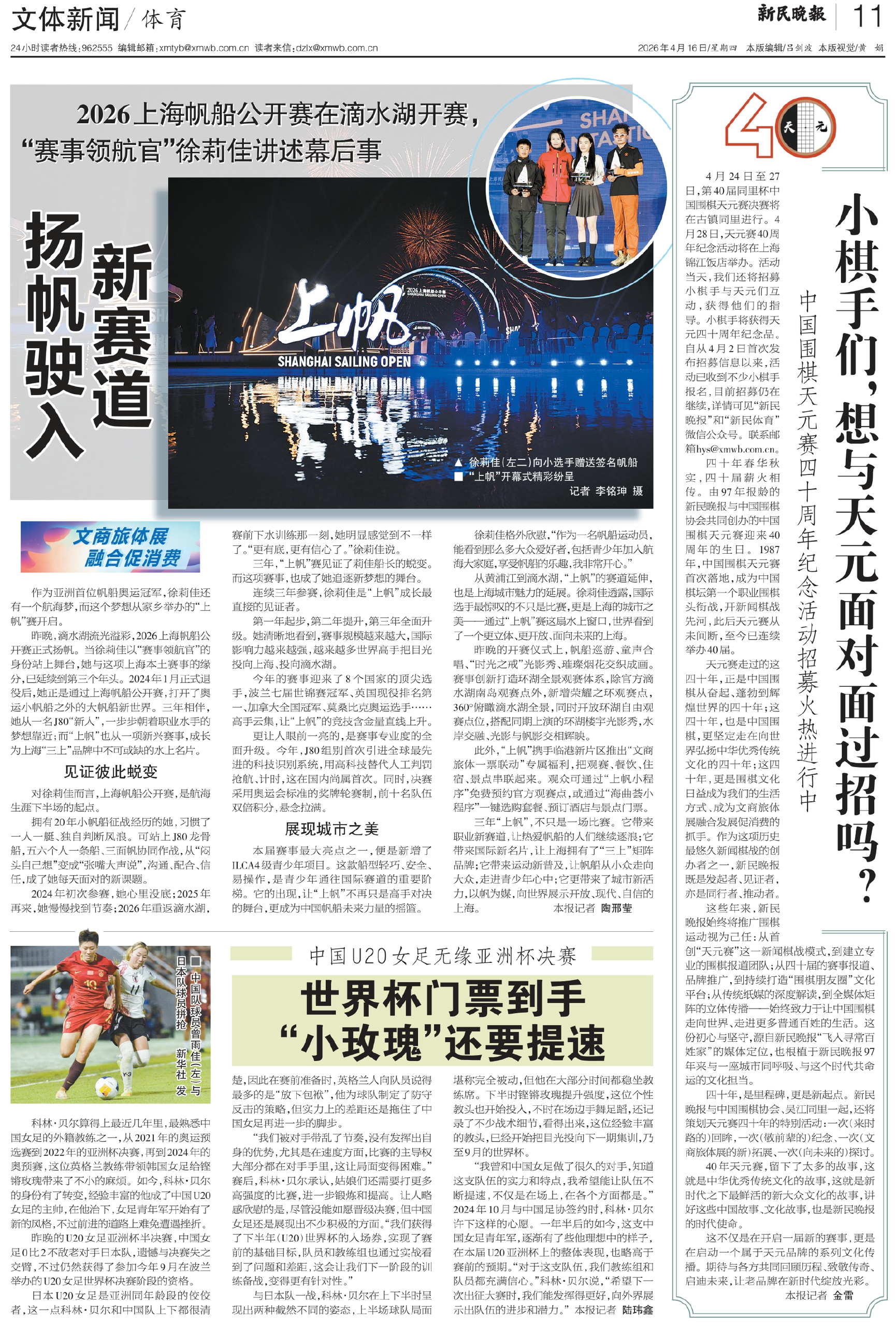 三年“上帆”,不只是一场比赛。它带来职业新赛道,让热爱帆船的人们继续逐浪;它带来国际新名片,让上海拥有了“三上”矩阵品牌;它带来运动新普及,让帆船从小众走向大众,走进青少年心中;它更带来了城市新活力,以帆为媒,向世界展示开放、现代、自信的上海。 本报记者 陶邢莹