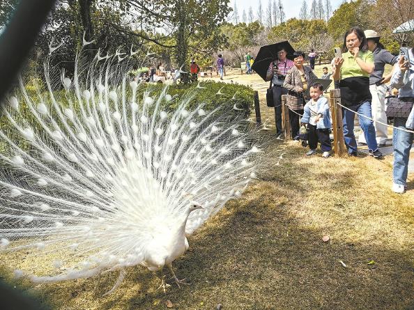 顾村公园内的东方鸟世界是沪上规模最大的鸟类主题园区,采用“无笼无网、定位放养”模式,汇集了全球60多个鸟类物种、数千只珍稀鸟类。园区摒弃传统笼养方式,孔雀、鹦鹉、猛禽等鸟类在规划区域内自由活动,游客可近距离观赏、互动,在游览中学习鸟类保护知识。 杨建正 摄影报道