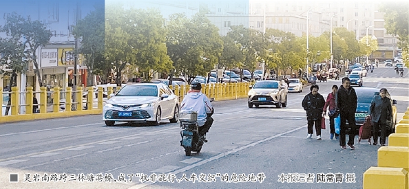 行人图省事、非机动车被逼道、机动车抢空间,三重问题叠加,让这座便民桥梁彻底沦为隐患重重的“危险路段”。