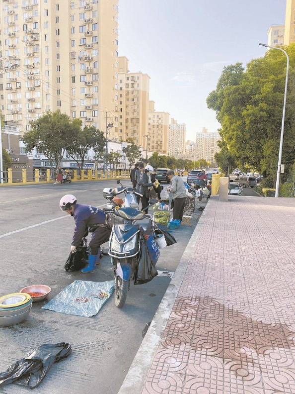 更令人诟病的是,这些摊贩奉行“早市模式”,上午9时左右便收摊走人,只留下一地狼藉:烂菜叶、鱼鳞、塑料袋散落桥面,有的粘在地砖缝隙里,风一吹异味飘散,保洁人员清理难度极大。附近居民周先生告诉记者,此处占道摆摊已有数年,相关部门曾多次整治,但大多是“整治一阵好几天,人走立马又回潮”,始终没能彻底解决。