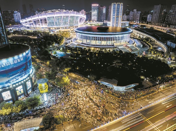 在街道的持续走访和收集建议中,这一次的尝试,逐步形成常态化机制。针对不同商户的需求,围绕不同赛事和活动类型,街道定制差异化消费联动方案。例如,在申花主场赛事期间,街道结合球迷需求,在周边商圈设置球队衍生品专区,引入主题餐饮门店,串联“观赛—餐饮—消费”场景;在国际乒联赛事期间,则联动商圈开展运动品牌促销活动,带动体育消费持续升温。在此基础上,街道还进一步延伸融合发展链条,启动星游城更新改造项目,打造“赛娱IP引力场”,规划设置赛事主题空间、票根兑换场景和互动体验街区。