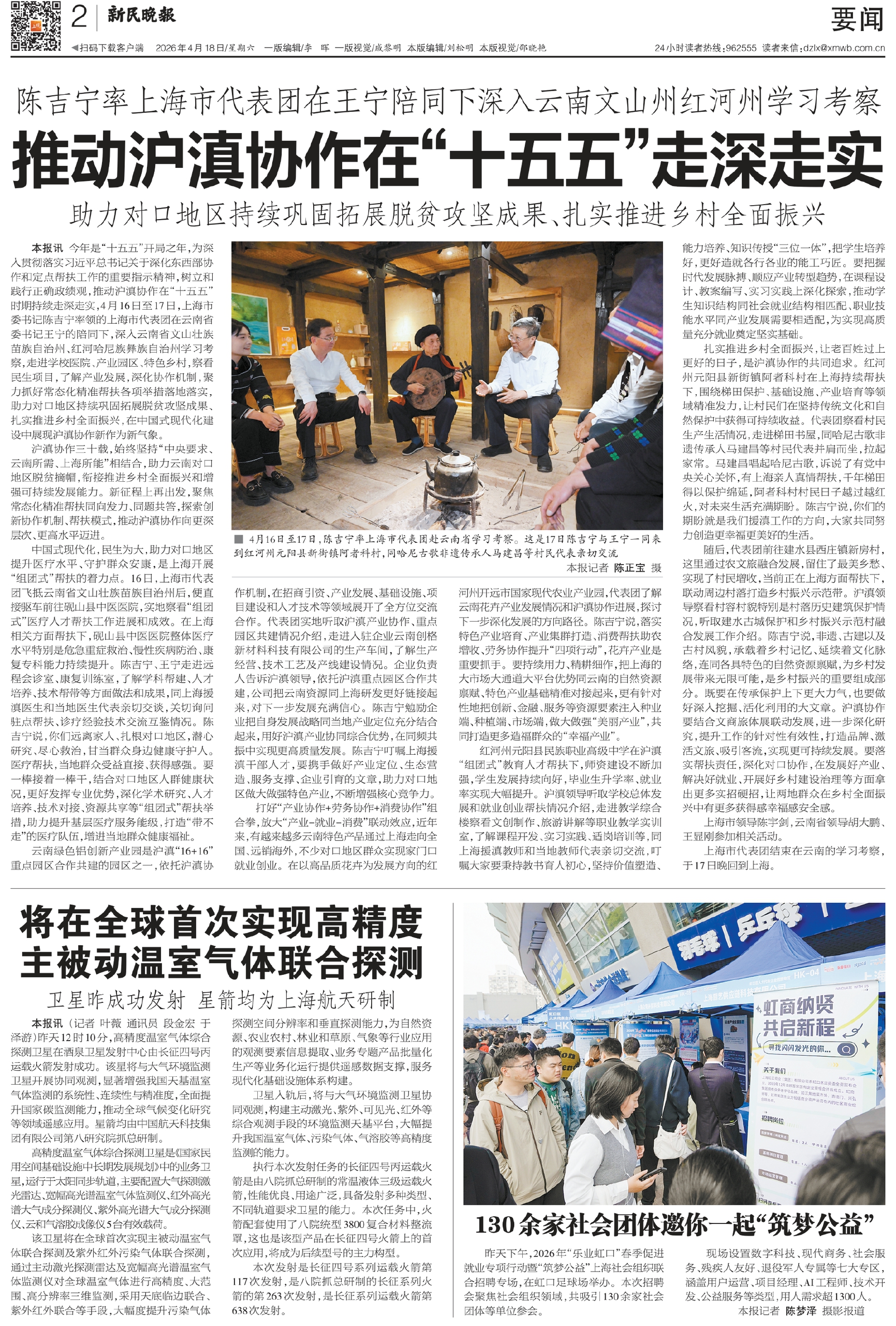 将在全球首次实现高精度主被动温室气体联合探测 130余家社会团体邀你一起“筑梦公益” 推动沪滇协作在“十五五”走深走实