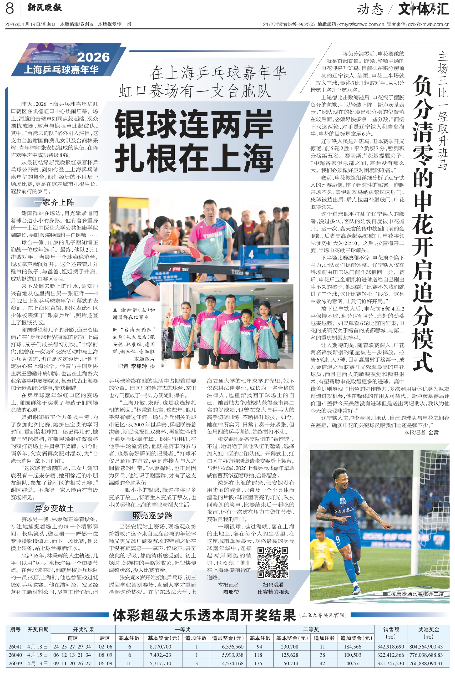 昨天,2026上海乒乓球嘉年华虹口赛区在凯德虹口中心热闹启幕。场上,清脆的击球声如雨点般起落,观众围拢成圈,掌声与惊叹声此起彼伏。其中,“台湾云豹队”格外引人注目,这支由台胞谢国群携儿女以及台商林秉辉、青年律师张安妮组成的队伍,在阵阵欢呼声中成功晋级8强。