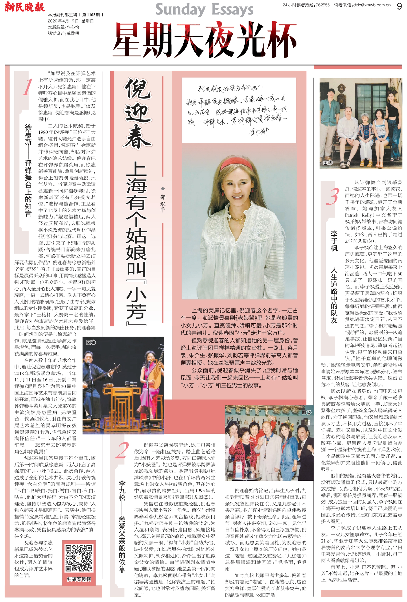 公众面前,倪迎春似乎消失了,但我时常与她见面,今天让我们一起来回忆——上海有个姑娘叫“小芳”,“小芳”和三位男士的故事。