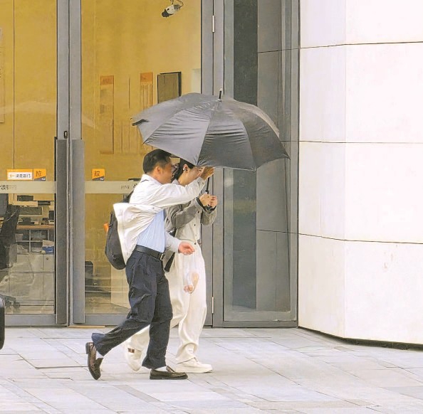 今天早晨,外滩的大风让路人不得不奋力撑伞 本报记者 张龙 摄