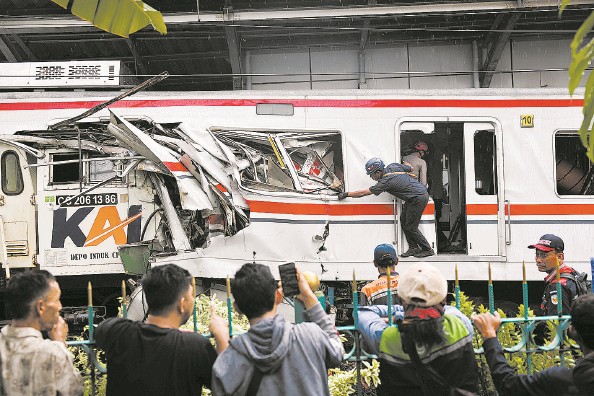 印度尼西亚西爪哇省勿加泗市27日晚发生列车相撞事故,已造成7人死亡、81人受伤,事故原因仍在调查中 图IC