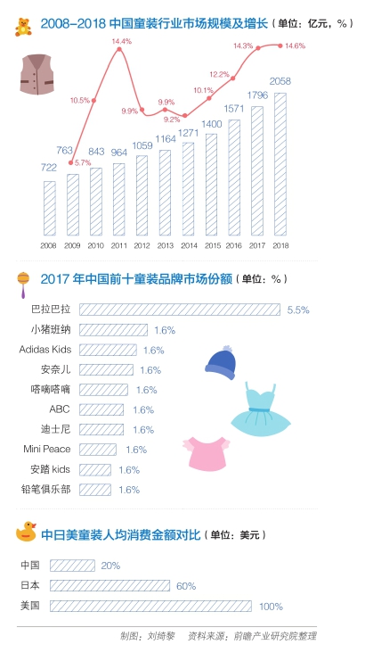 这里的人似乎天生手巧。历史上,织里织造业就相当兴旺,史料中有“遍闻机杼声”的记载,“织里”也因而得名。上世纪80年代中期,织里有7 万多人专门从事童装产业;21 世纪初,织里童装年产量达到1.2 亿件;在2018年,这一数据已增长到14亿件,其年销售额550亿元,市场规模占据国内童装市场半壁江山。