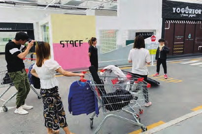 添添妈妈杨女士告诉记者,自己女儿从今年开始成为一名童模,一开始经过熟人介绍,成功和淘宝上的童装店搭上线。“拍着拍着,我发现我女儿还挺有感觉,她也喜欢拍,她摆的每个造型我都很喜欢”。当天并非周末,杨女士带着添添从幼儿园请假而来,一道来的还有为拍摄工作服务的团队:大学生模样的摄影师,协助童模妈妈一块逗孩子的助理,以及超市中常见的手推车和一排能够到处移动的衣架。