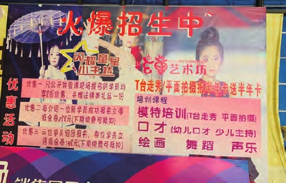 在织里随处可见的童模培训机构广告。摄影/王仲昀