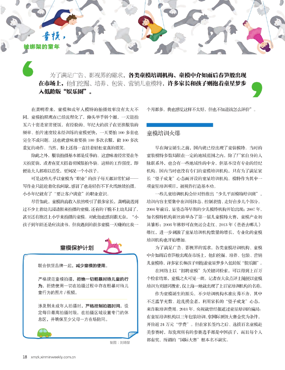 为了满足广告、影视界的需求,各类童模培训机构、童模中介如雨后春笋般出现在市场上,他们挖掘、培养、包装、营销儿童模特,许多家长和孩子则抱着童星梦步入低龄版“娱乐圈”。