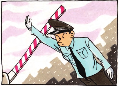 不久,小区门口路边的绿地通道增加了一个供行人进出的栅门,K君终于不必在进出时心惊胆战了。那天下班,K君快到小区时,听到那个小保安提醒,先生请走这个通道,便赶紧走了行人栅门通道。但他走近栅门时,栅门杆却没有打开,他带着不满的疑惑抬头盯视着小保安,对方说,你靠得太近了,往后退退,栅门是有感应的。门开了,小保安傻乎乎地再问:你是住几号的?K君狠狠地瞪了他一眼,说,我不住这个小区,你把门打开干嘛?这话有点呛人,小保安尴尬了。