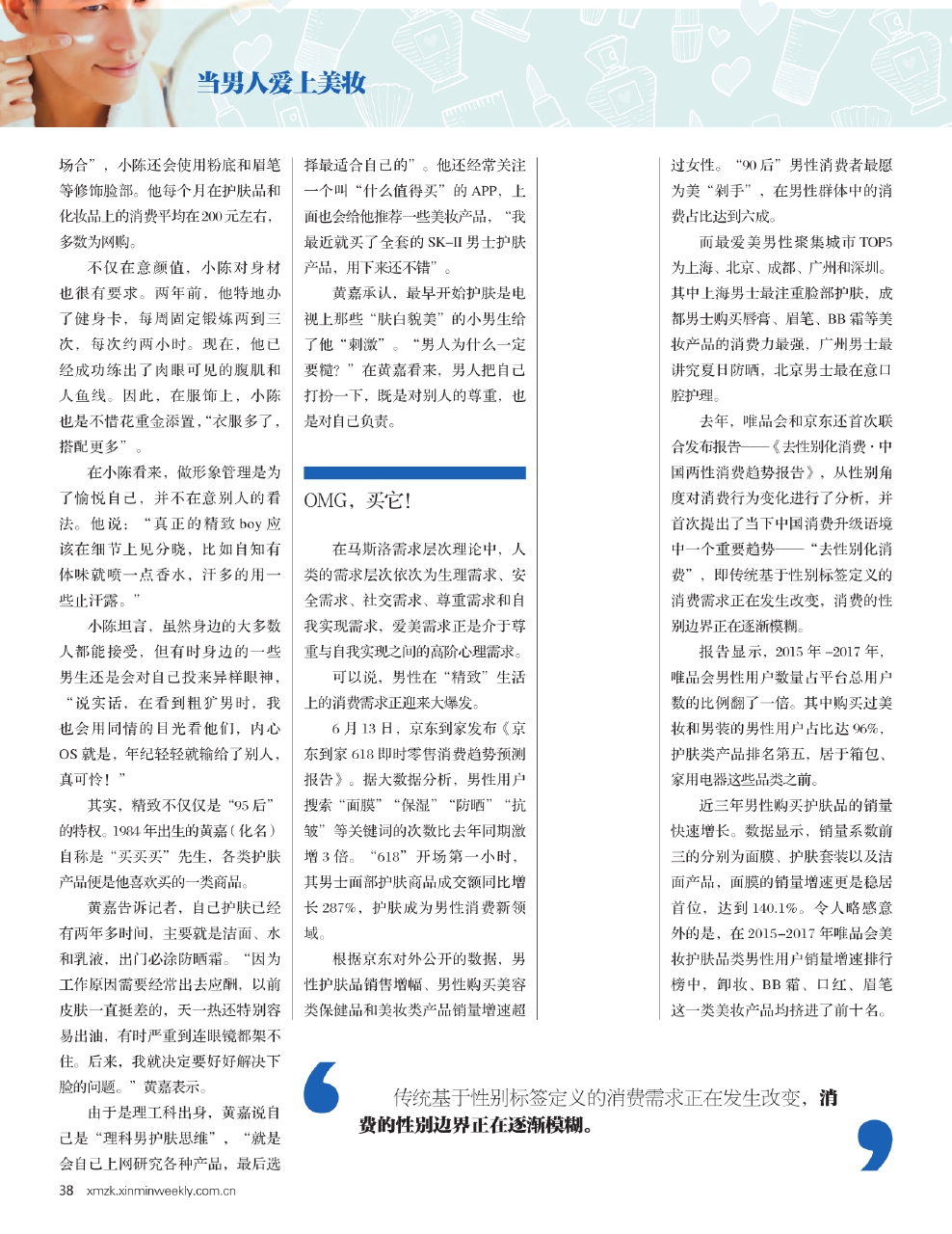 在消费升级、明星效应与求美流行文化的影响下,越来越多男生开始护肤、化妆,蜕变成一个个精致的男孩。