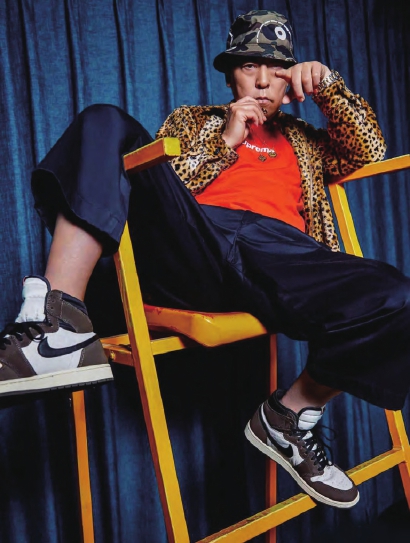 两个多月前,倪大红与某国内知名的时尚杂志合作拍摄了一组潮流大片,一时间成为众多年轻人在社交媒体上讨论的“爆款”,这也成为他正式“进军”潮男界的代表作。照片中,现年59岁的倪大红身着豹纹外套,内搭一件经典潮牌Supreme的短袖T裇,戴上大金链子,脚踩限量版Air Jordan篮球鞋。配上周围的深色幕布,穿戴鲜艳的倪大红以一种演技之外的方式给人以强烈的视觉冲击。