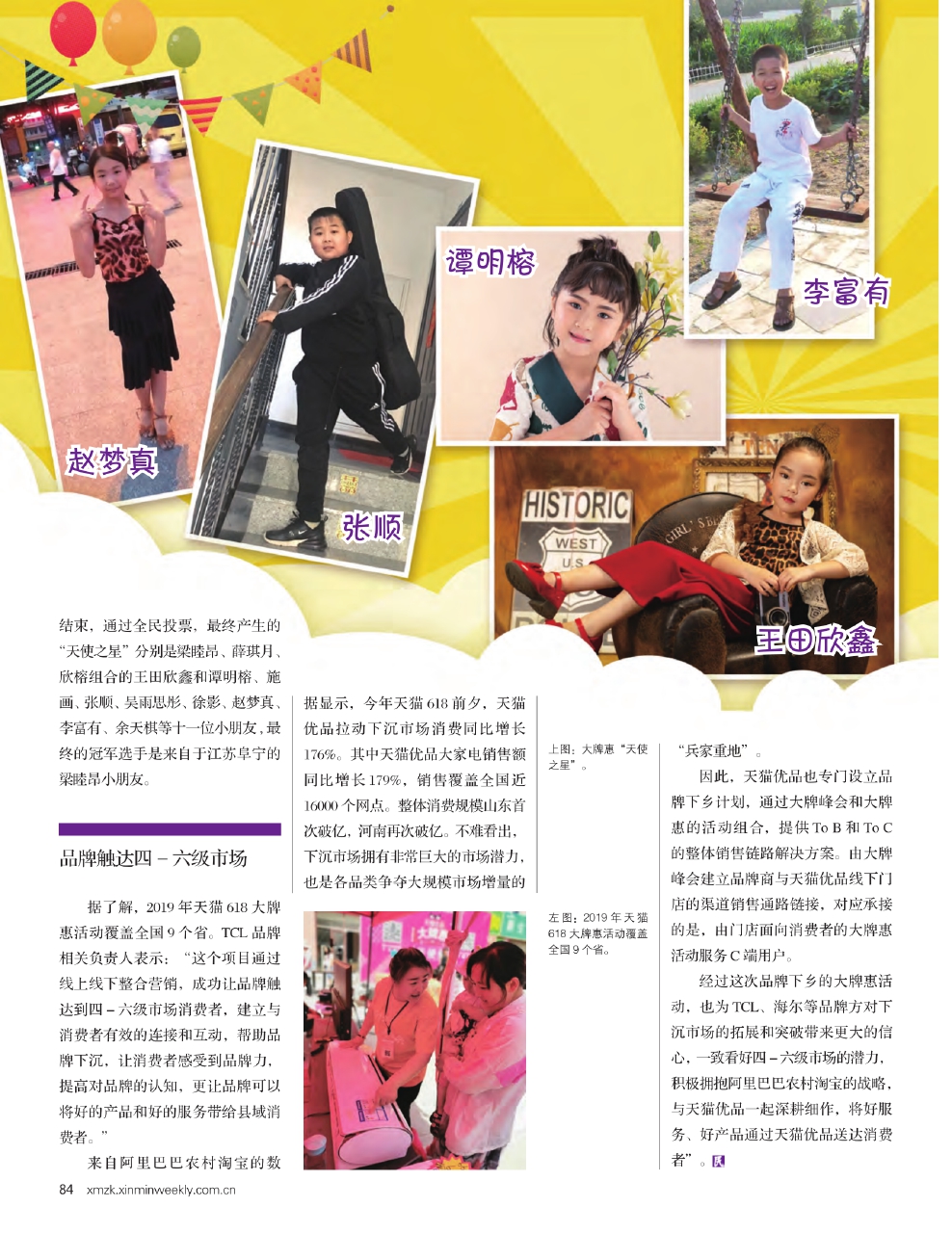 2019年6月1日起,天猫优品联合TCL和海尔,在天猫618期间共同发起“大牌惠”活动,销售额超过1200万元。其中,四川省仁寿县一家天猫优品门店单场活动最高销售额达100万元。据悉,大牌惠活动期间,累计为TCL和海尔的品牌店铺增加关注粉丝35万人,充分激发了这两个品牌在县域消费者群体中的影响力和认知度。