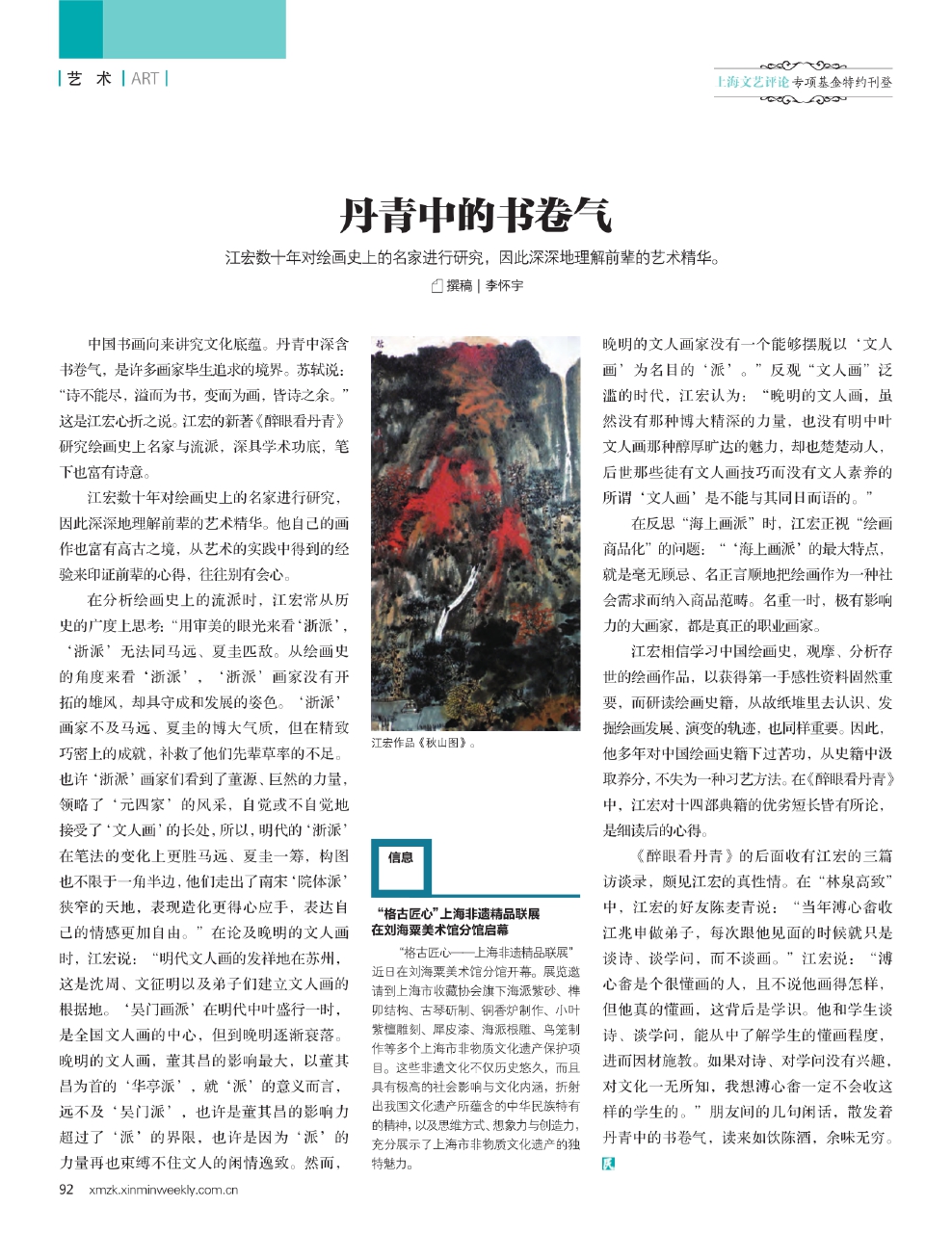 江宏数十年对绘画史上的名家进行研究,因此深深地理解前辈的艺术精华。他自己的画作也富有高古之境,从艺术的实践中得到的经验来印证前辈的心得,往往别有会心。
