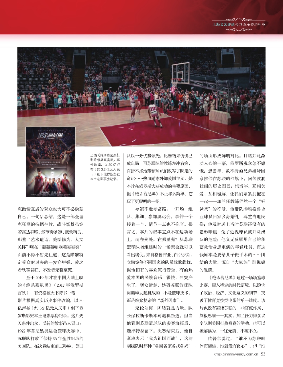 《绝杀慕尼黑》通过一场场篮球比赛,摄入特定的时代语境,以隐含了政治、经济、文化意义的细节,突破了体育竞技类电影的单一维度。该片也没有避讳苏联的一些官僚作风、刻板思维——其实,加兰任力排众议率队到美国打热身赛的举动,也可以被解读为,一往无前,不破不立。
