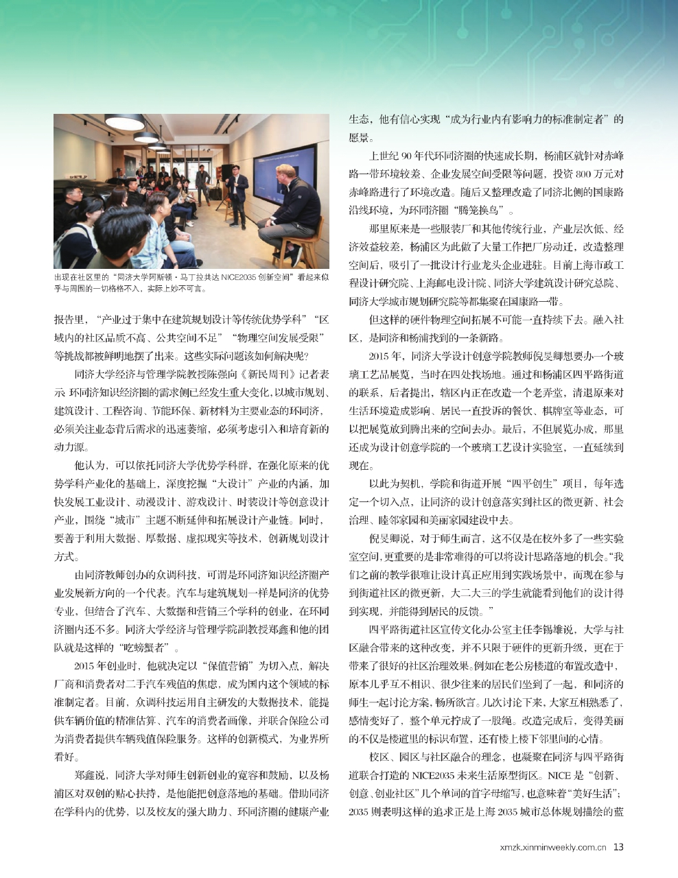 伴随着杨浦区从“工业杨浦”到“知识杨浦”再到“创新杨浦”的转型,环同济知识经济圈也面临着自身的新一轮升级。正视短板才能更好地做强长板。在一份同济大学课题组的研究报告里,“产业过于集中在建筑规划设计等传统优势学科”“区域内的社区品质不高、公共空间不足”“物理空间发展受限”等挑战都被鲜明地摆了出来。这些实际问题该如何解决呢?