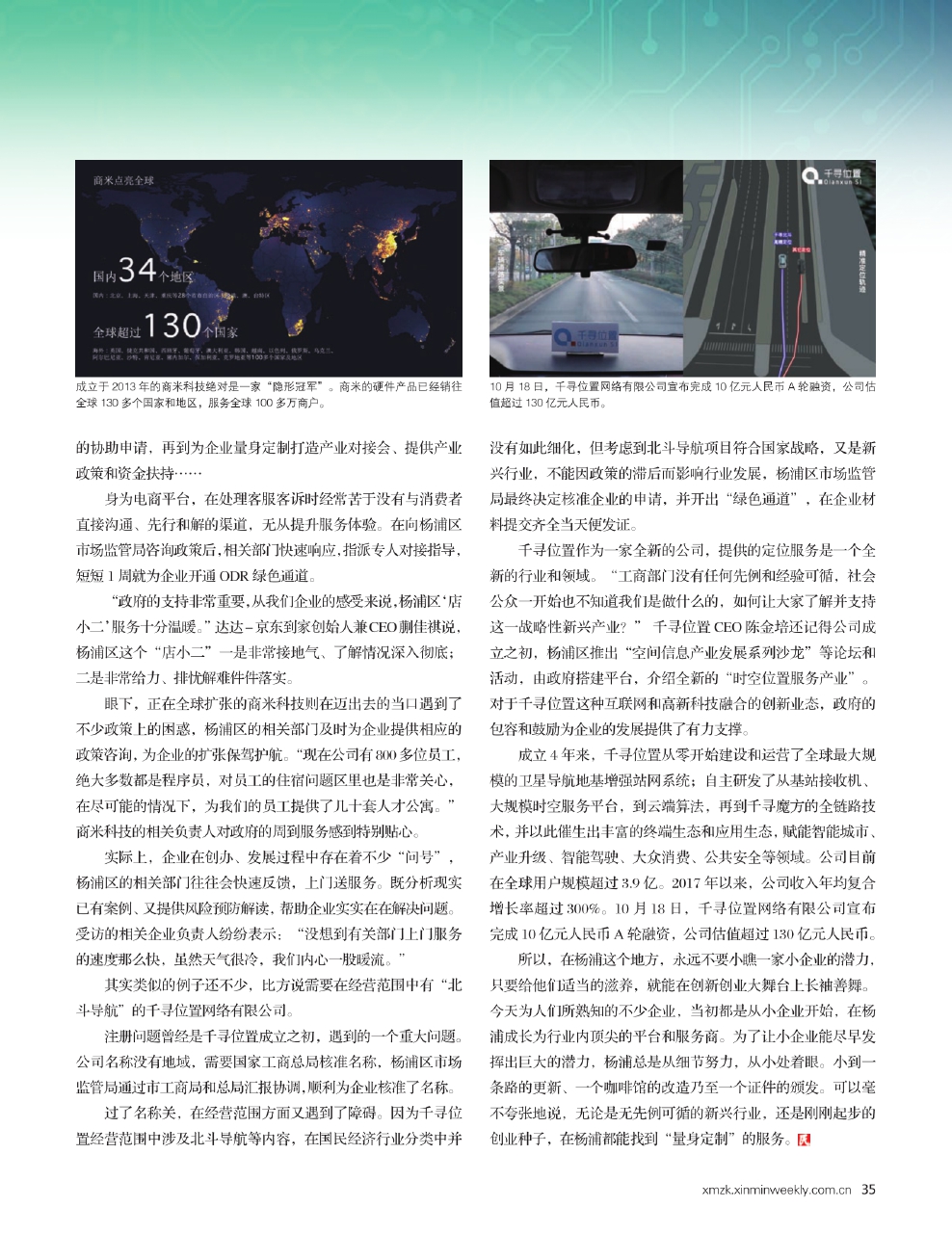 千寻位置作为一家全新的公司,提供的定位服务是一个全新的行业和领域。“工商部门没有任何先例和经验可循,社会公众一开始也不知道我们是做什么的,如何让大家了解并支持这一战略性新兴产业?” 千寻位置CEO陈金培还记得公司成立之初,杨浦区推出“空间信息产业发展系列沙龙”等论坛和活动,由政府搭建平台,介绍全新的“时空位置服务产业”。对于千寻位置这种互联网和高新科技融合的创新业态,政府的包容和鼓励为企业的发展提供了有力支撑。