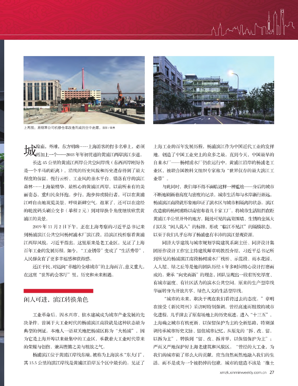 同济大学建筑与城市规划学院建筑系副主任、同济设计集团原作设计工作室主持建筑师章明教授介绍,习近平总书记所到所见的杨浦滨江南段杨树浦水厂栈桥、示范段、雨水花园、人人屋、绿之丘等是他的团队历经4年多时间精心设计打磨而成的。秉承“向史而新”的理念,团队呈现出一段有历史厚度、有城市温度、有社区活力的滨水公共空间,原来的生产型岸线华丽转身为开放共享、绿色人文的生活型岸线。
