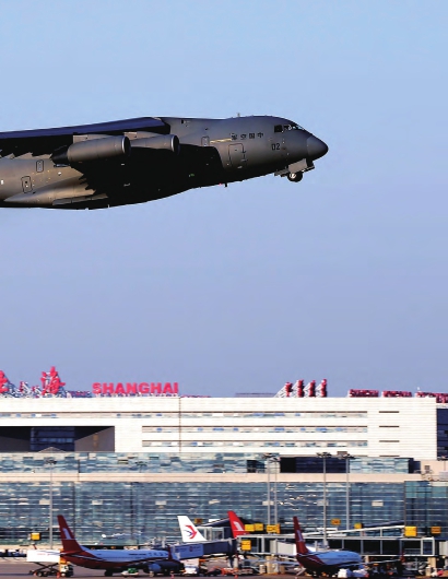 2月17日,空军再次出动运-20等三型多架运输机,从上海虹桥机场等七个机场起飞,向武汉紧急空运军队支援湖北医疗队队员和物资。图为运—20从虹桥起飞。摄影/王鲁杰