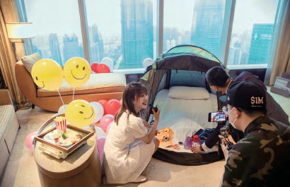 直播小姐姐通过携程网展示上海精品酒店的自然与人文之美。摄影/周馨