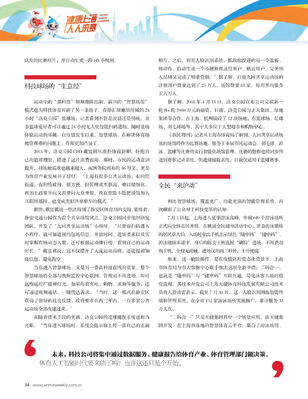 《新民周刊》记者从上海市体育局了解到,九回共享运动场里的场馆将作为比赛场地,服务于本届市民运动会。羽毛球、游泳、篮球等比赛将实行智能化场馆管理,比赛的数据也将同步传送到赛事记录系统。但进球捕捉系统,目前仅适用于篮球赛事。