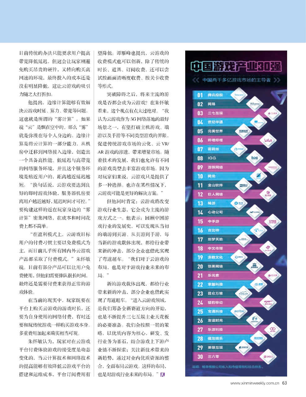 “云游戏将给游戏产业带来多种维度的升级。” 盛趣游戏副总裁谭雁峰在接受《新民周刊》记者采访时表示。他认为,云游戏降低了玩家接触高品质游戏的硬件门槛,这会让优质的内容得到更多的认可,促进整个产业在内容开发上投入更多的资源。“不管云不云,内容是核心。”同时,游戏厂商也要致力云计算的技术发展,开辟“内容+ 技术” 的双线战场。