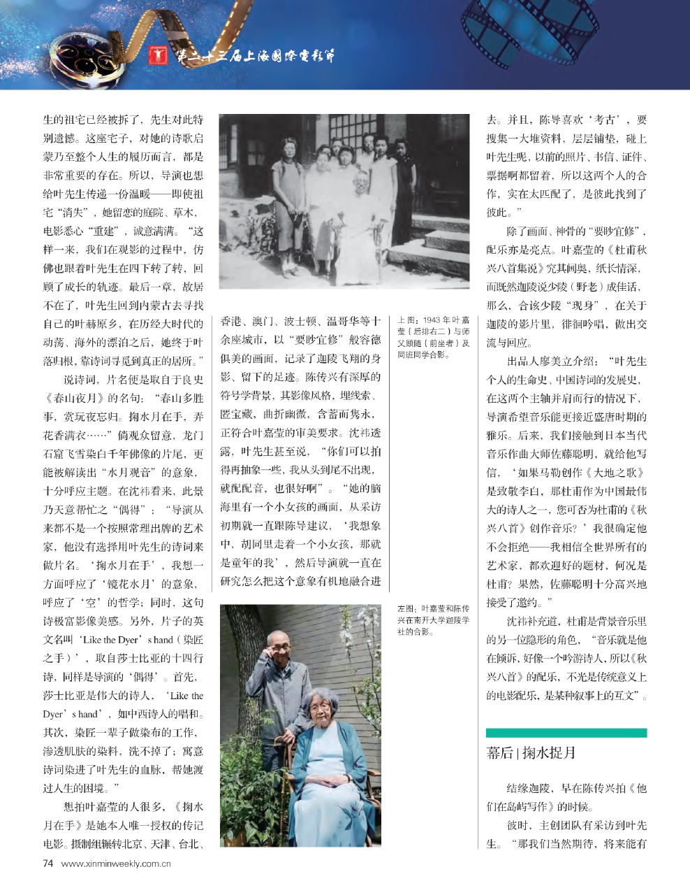 她同时向记者表示,希望《掬水月在手》未来能在海外尤其是叶先生生活过的北美地区放映。