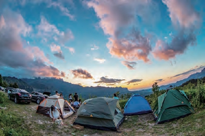 2020年8月21日,人们在重庆市南川区金佛山龙岩城露营,乐享清凉。