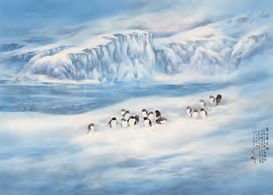 乐震文画的山大气磅礴,又不失典雅;画的水涓滴连绵,又一路传神;画的光灿烂亮丽,又温馨宜人;画的云纵横飘逸,又松柔动情。而张弛的画,叠嶂壮美与云纱舒卷并存,气宇不凡与楚楚动人同在,画如其名,“张弛有致”,被海派大师陈佩秋誉为 “大有夺得沪上山水画冠军之能”。同在艺术领域的夫妇俩情投意合,他们的艺海生涯亦相互交融。此次的展览,琴瑟和鸣之达观,不仅仅是代表夫妻伉俪,更重要的是一份 “用心”,邀请各位嘉宾观众的“用心”,以最好的作品来款待,使各位嘉宾享受可坐可卧可游的浓缩精致之旅,人仿佛可以被吸进去,艺术家就是山川宇宙的缔造者,磨墨、展纸、凝思、提笔,一场又一场“大片” 即将开演。仿佛一次环球旅行,有中国特色地貌,也有南极冰川,通过观者的脚步,穿插式的等着你的观看和享受。作为画坛比翼鸟,他们对彼此的创作了然于胸,也经常从对方汲取养分和灵感,有过多次成功的合作。有趣的是,尽管这对画坛伉俪夫妇常常携手写生,两人却各有各的视野。乐震文崇尚山石,醉心自然,他的作品注重笔墨、浓淡、空间、疏密以及一石一峰,整幅山水画气脉相通;而张弛更喜欢将自己融入大自然,她的作品,或表现水流直下、一泻千里,或表现朝雾迷蒙、云海奇涌,或表现万壑松风、千枝摇曳,动静结合,如诗如梦。