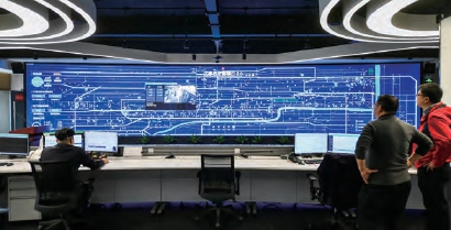 上图:久事公交智慧云2.0 监控大屏。 摄影/ 陈梦泽