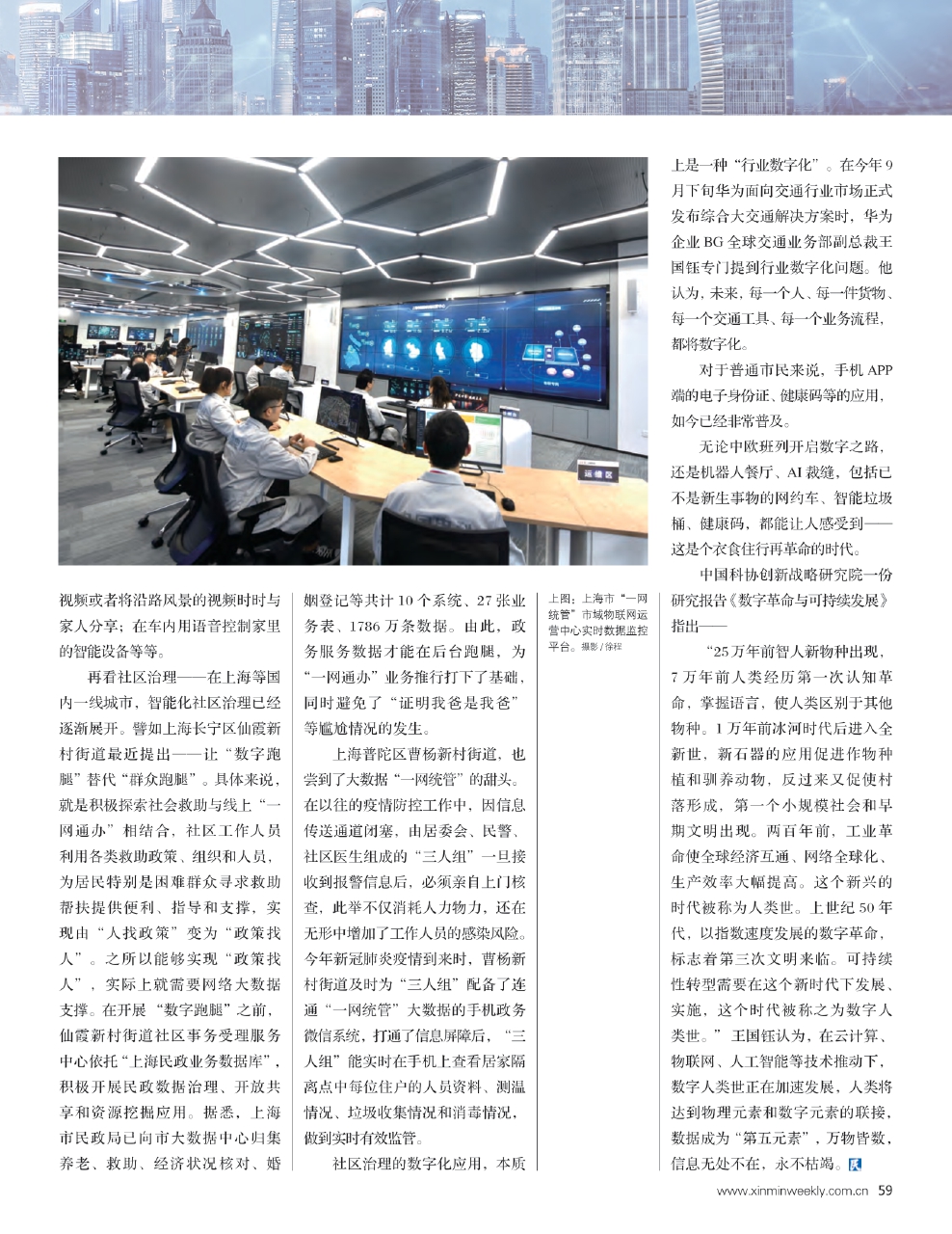 上海普陀区曹杨新村街道,也尝到了大数据“一网统管” 的甜头。在以往的疫情防控工作中,因信息传送通道闭塞,由居委会、民警、社区医生组成的“三人组” 一旦接收到报警信息后,必须亲自上门核查,此举不仅消耗人力物力,还在无形中增加了工作人员的感染风险。今年新冠肺炎疫情到来时,曹杨新村街道及时为“三人组” 配备了连通“一网统管” 大数据的手机政务微信系统,打通了信息屏障后,“三人组” 能实时在手机上查看居家隔离点中每位住户的人员资料、测温情况、垃圾收集情况和消毒情况,做到实时有效监管。